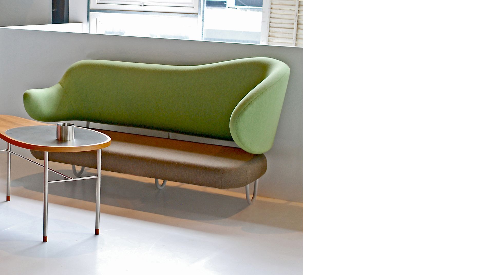 The Wall sofa is delivered with hand sewn upholstery in wool of customer’s